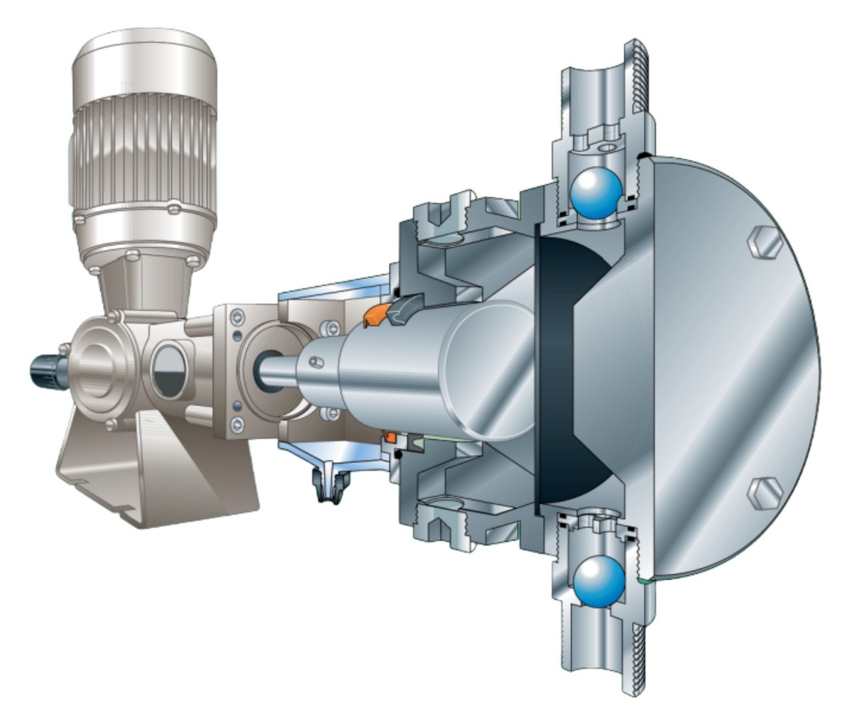 Membranska dozirna pumpa pogodna je za abrazivne tečnosti sa malom količinom čvrstih čestica u suspenziji ili za toksične rastvore.